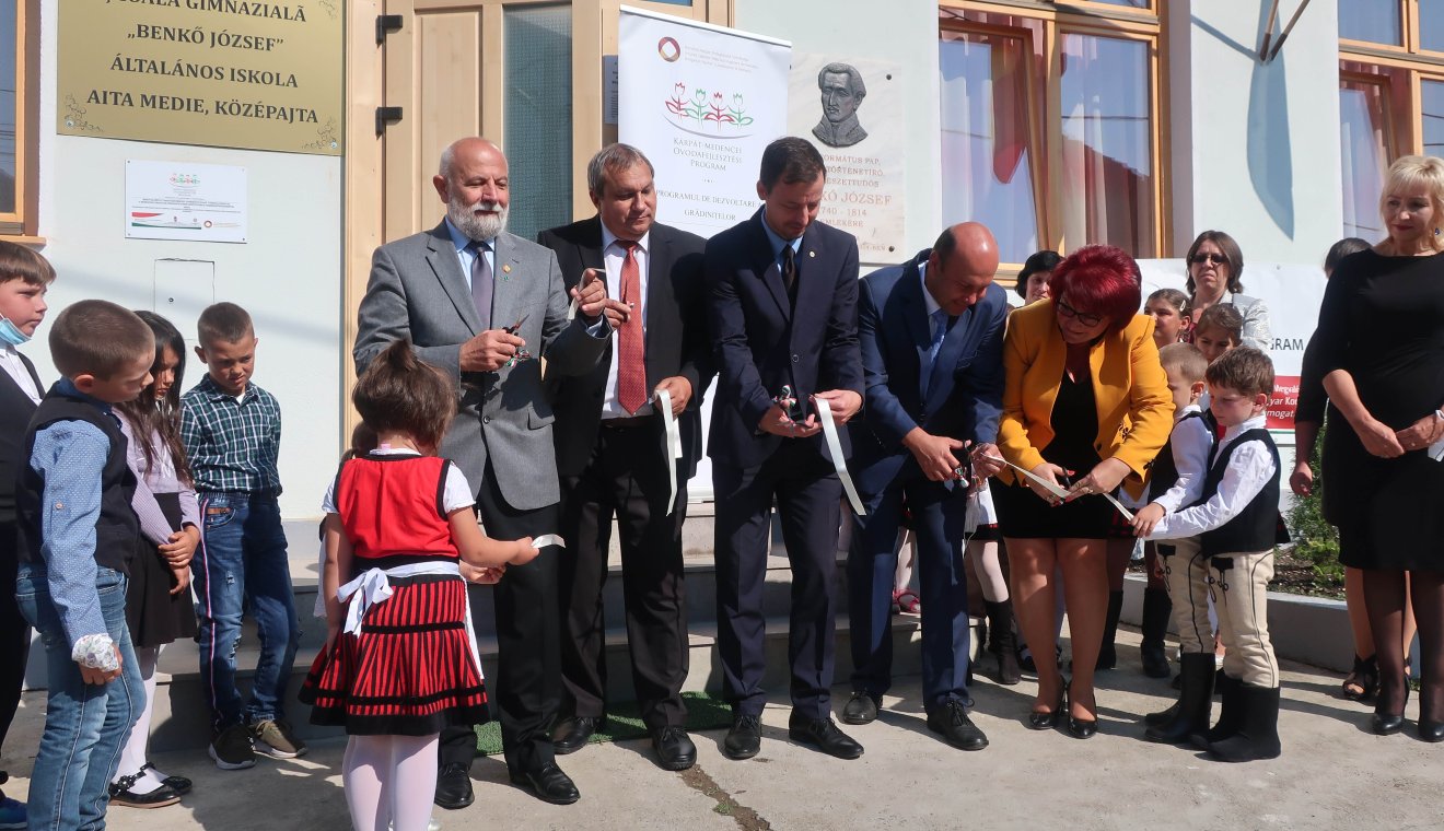 Szerdán Középajtán átadták használatnak a megújult óvoda- és iskolaépületet, mely a Magyar Kormány Kárpát-medencei Óvodafejlesztési Programja keretében, a Romániai Magyar Pedagógusszövetség, a megyei tanács, illetve Nagyajta község önkormányzatának támogatásával, valamint együttműködésében kapott „szép, új köntöst a padlótól a kupás cserépig”.