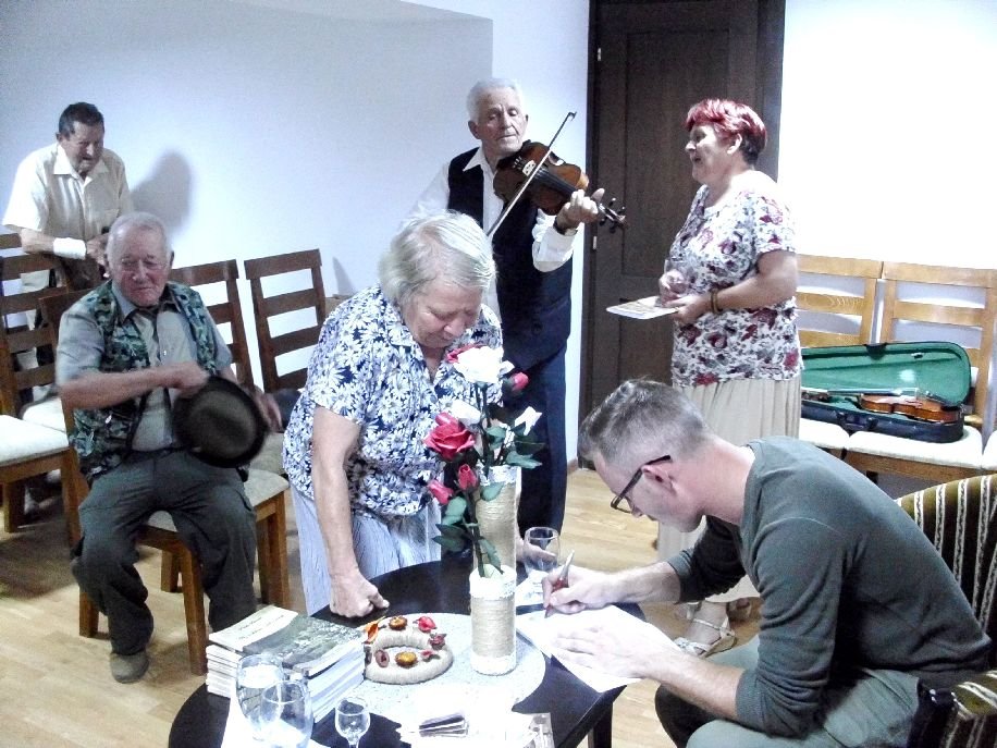 Préda Jenő zalánpataki muzsikus, a kötet egyik szereplőjeként is jelen volt az eseményen. Az öreg hegedűjét is megszólaltatta Préda Barna kíséretében, hogy meséljen a Nyír-oldal és Csukjon-tető közötti völgyben meghúzódó piciny település és a benne eltöltött kilencven esztendő történéseiről. Ez pedig oly szívhez szólóra sikeredett, hogy a 85. életévét taposó Farkas József, a szerző szintén szereplőként jelen lévő nagytatája dalra fakadva engedett utat szülőfalujához fűződő érzelmeinek. Példáját a hallgatóság is követte.