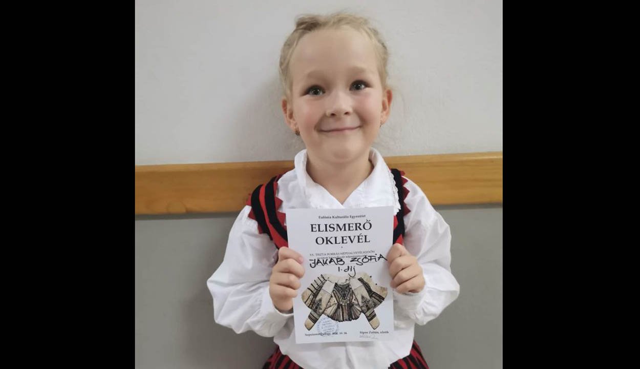 Jakab Zsófia a sepsiszentgyörgyi Plugor Sándor Művészeti Líceum előkészítő osztályos kisdiákja, kitűnő énekhangjával érdemelte ki a zsűri elismerését a regionális szintű XX. Tiszta Forrás Népdalvetekedőn.