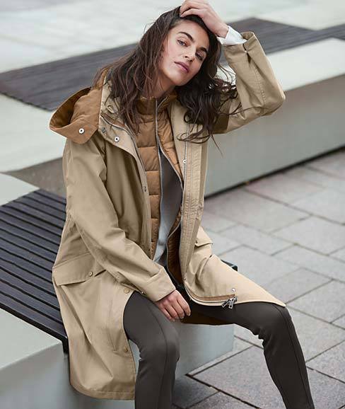 Vízhatlan, szélálló és lélegző anyagból készült a bézs színben, 36-tól 50-es méretig kapható 3 az 1-ben női esőkabát, amelyben egy mellény is található, amely a kabáthoz hasonlóan magában is viselhető, együtt viszont a hűvösebb idő és a csapadék ellen is igazán ütős párosként vethetők be! A környezetbarát evoPel impregnálással ellátott kabát különösen puha tapintású, matt anyaga maximum 3.000 mm vízoszlop nyomásának áll ellen, emellett állítható bőségű kapucnija és fedett szegélyű első cipzárja is ideális összeállítássá teszik mindenféle szabadidős programhoz, emellett húzózsinórral ellátott derékrésze és két patentgombos zsebe is van.
