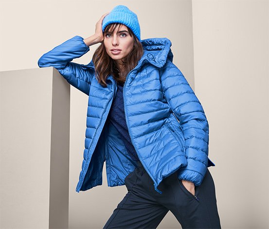 Sportosabb, lezserebb viselet a kék színben, XS-től XL-es méretig elérhető steppelt női kabát, amely szintén környezetbarát evoPel impregnálással készült, így víztaszító, emellett a hideg ellen is rendkívül jól véd, egyfelől újrahasznosított anyagból készült könnyű és meleg köztes rétegének, másfelől magasan záródó állógallérjának és kapucnijának köszönhetően. Egy belső, valamint két cipzáras, bevágott zsebében elegendő helyet találunk a legfontosabb apróságoknak, miközben az enyhén karcsúsított szabás a nőies megjelenést is biztosítja.
