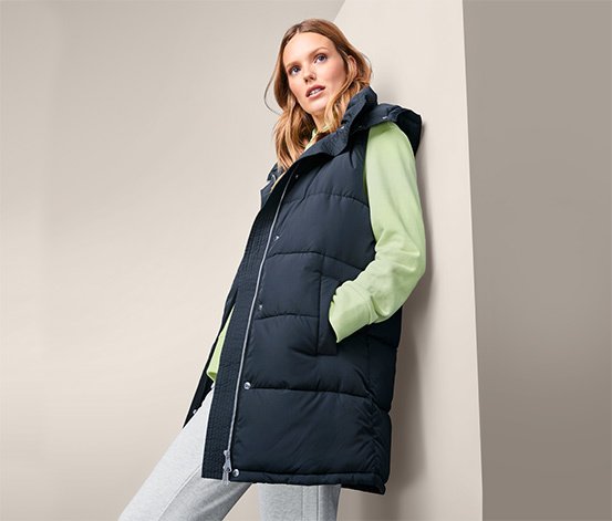 Szintén steppelt megoldással, különösen puha softtouch anyagból készült a sötétkék színben, XS-től XL-es méretig elérhető hosszú steppelt mellény, amely kényelmes és meleg viseletet nyújt az átmeneti időszakokra. Környezetbarát evoPel impregnálásának köszönhetően víztaszító, miközben a hideg szél ellen is véd a könnyű és meleg köztes rétegnek, a levehető kapucninak és a magasan záródó gallérnak köszönhetően. Állítható bőségű derékrésze nőies sziluettet biztosít, két oldalsó, bevágott zsebe pedig rendelkezésre áll mindannak, amit folyamatosan szeretnénk magunknál tudni!