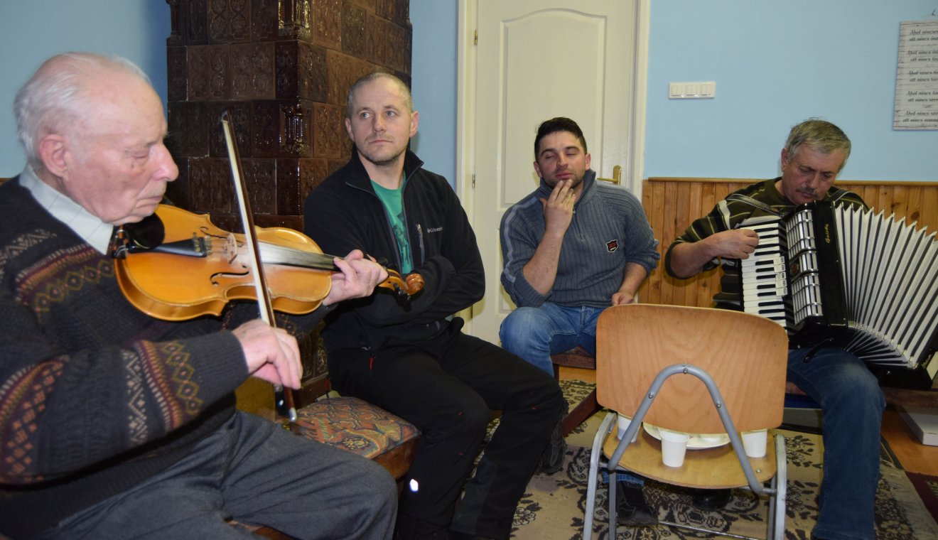 A hegedű hangja mellé a Jakab Attila kezében megszólaló harmonika társult. A körben ülők nótája is rendre felcsendült. A tervezettnél kicsit hosszabbra sikerült esten mindenki jól érezte magát, jó volt feltöltődni a régi dallamokkal, a múltból előcsalogatott emlékekkel. Köszönet Lajos bácsinak és a csatlakozóknak, valamit a kellemes környezetért Ernának!