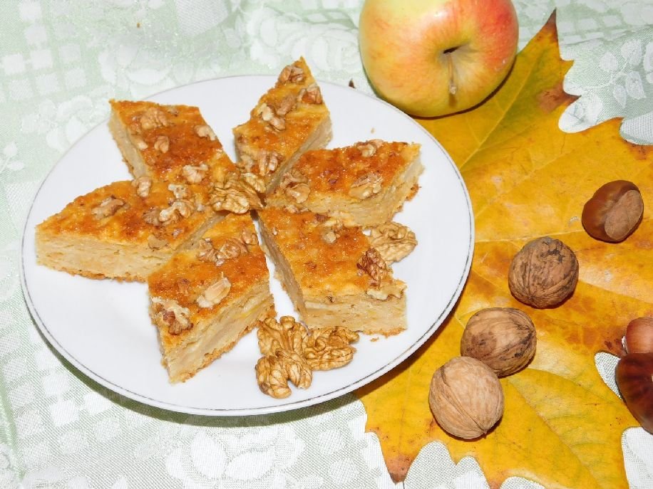 Hozzávalók: 20 dkg sütőtökpüré, 2 alma reszelve, 2 körte apróra felkockázva, 20 dkg cukor, 3 tojás, 1 dl olaj, 1 dl tej, 35 dkg liszt, 1 csomag sütőpor, nagy csipet szódabikarbóna, 1 mokkáskanál fahéj, 1 citrom leve, a tetejére 2 maréknyi durvára vágott dió és 1 evőkanál cukor.
