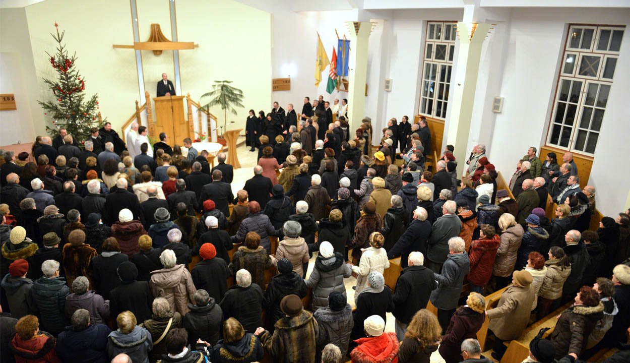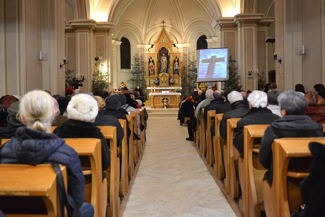 A felújítás miatt zárva lévő református vártemplom helyett az új gyülekezeti teremben tartott istentiszteleten szóra emelkedő Kovács Károly katolikus segédlelkész szerint megfertőződött és pusztulásnak indult az emberiség nagy családfája. A benne élősködő kórokozóktól pedig csak Jézus segítségével tudjuk megtisztítani.