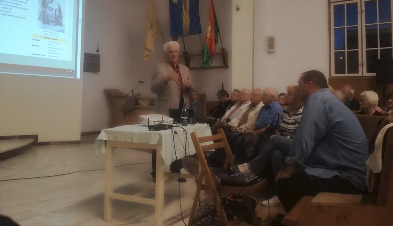 Ez is egy „első” tapasztalat volt számára: még soha templomban nem tartott előadást, vallotta be a professzor, majd áttért a számítógép történetére. Így megtudhattuk, hogy ugyan nem számítógépet, de annak ősét, a mechanikus számológépet már a XVII. század elején feltalálta Blaise Pascal, illetve már fiatalabb kortársa, Wilhelm Schickard jegyzeteiben is találtak egy leírást, amelynek alapján szintén működő, alapműveleteket végző gépet tudtak szerkeszteni.