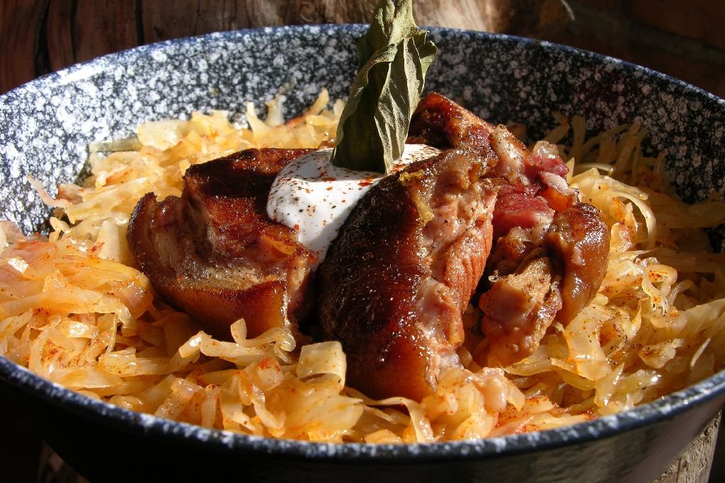 Valószínűleg említettem már, hogy a minap akkora energia-befektetéssel nyírtam a füvet, hogy megszakadt bele a meniszkuszom (ami egyébként egy porc az emberi térdben). Nosza, rekordsebességgel el is jutottam egy székelyudvarhelyi műtőasztalra, ahol jó ideig, csendes magányban, békésen mélázhattam egy ablakon beintegető fenyőág társaságában, teljes nyugalomban leledzve, hogy míg nincs zsibbasztás, nincs műtét sem. Aztán már megijedni sem volt időm, mert egyszer csak kivágódott az ajtó, betódultak vagy 15-ön és mindenki serényen tevékenykedni kezdett. Ebből a zsibbasztást mondjuk egészen jól érzékeltem, meg premier plánban végignézhettem, hogy az orvos mily nagy precizitással (lábfejemet megragadva) ecseteli végig a lábam jóddal. Mire befejezte, teljesen pácoltcsülök-formát öltött, melyet azóta is igen-igen kívánva, ma végre el is készítettem. Persze, nem jódot használtam, hanem 8 gerezd reszelt fokhagyma, 2–2 jó nagy teáskanál mustár és csípős piros arany, 3 kanál olaj, 1–1 teáskanál őrölt kömény és feketebors keverékét. Ezzel aztán jól megmasszírozva csülkömet, éji pihenőre a hűtőbe vonult. Másnap megsütöttem, és párolt káposztával jóízűen elfogyasztottam.