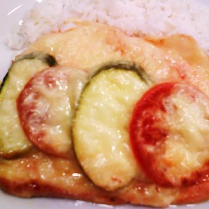 Elkészítés: a csirkemelleket szétnyitjuk, kiklopfoljuk, megszórjuk a fűszerkeverékkel. A paradicsomot és a cukkinit 8-8 ujjnyi vastag szeletre vágjuk. A cukkiniszeleteket ételízesítővel és csipet fehérborssal megszórjuk, és 15-20 percet állni hagyjuk. A hússzeleteket kevés olajon serpenyőben fehéredésig sütjük. Ne tovább! Tepsibe vagy jénaiba tesszük egymás mellé, felváltva 2-2 szelet paradicsomot és cukkinit teszünk rá. Megszórjuk oregánóval és bazsalikommal, majd a sajtszeletekkel beborítjuk. Sütőben 160 fokon, 10-15 perc alatt készre sütjük, köretnek rizst vagy friss salátát adhatunk. (www.mindmegette.hu)