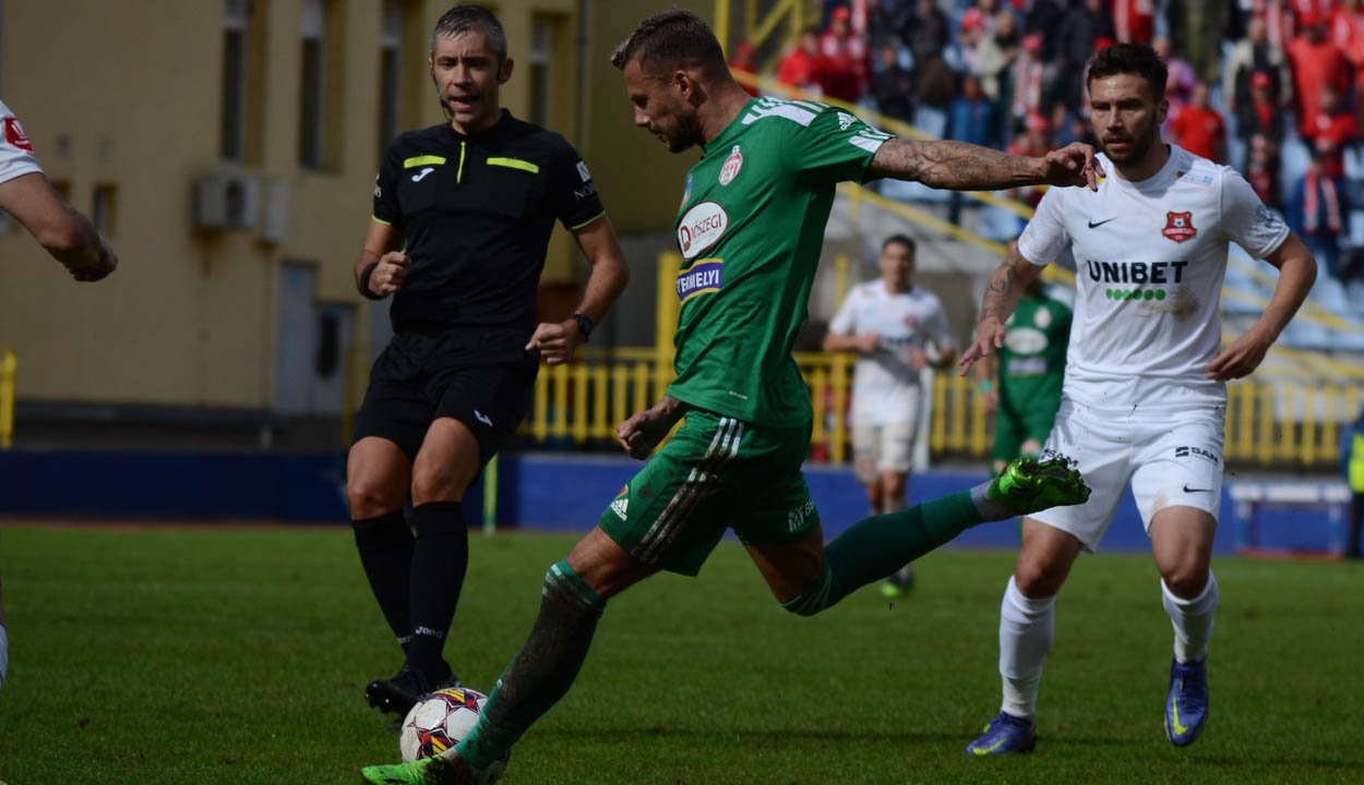 Cristiano Bergodi végletekig kiélezett mérkőzésre számíthatott, hiszen ezt megelőzően a nagyszebeniek még nem találtak legyőzőre. A medgyesi találkozó zuhogó esőben kezdődött az előző esti CFR – Petrolul meccs következtében alaposan feltúrt pályán. Inkább csak kóstolgatták egymást a felek a mérkőzés első felében, a mienk nem tudtak rést találni a jól záró nagyszebeni védelmen. A 37. percben Paraschivnak köszönhetően megtört a gólcsend: a 23 éves támadó betört a tizenhatosra, és a védők asszisztálása közepette hatalmas gólt lőtt a bal felsőbe (1–0). A félidő végén Baba Alhassan lapos lövését vetődve hárította Niczuly Roland.