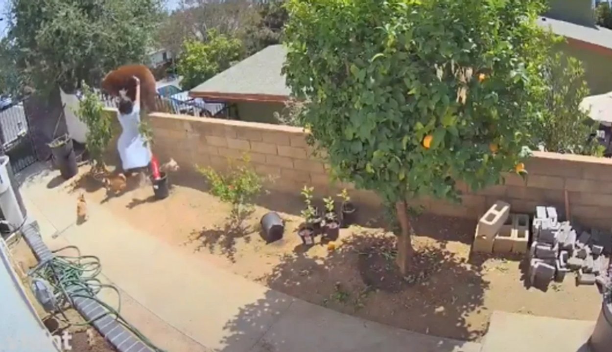 Egy fekete medve sétált egy dél-kaliforniai ház falán, amikor egy kamaszlány kutyái odarohantak hozzá, a medve viszont a bocsai miatt is odakapott párszor hozzájuk. A kutyák gazdája váratlanul odaszaladt, és lelökte a falról a medvét - írta az NBC News.