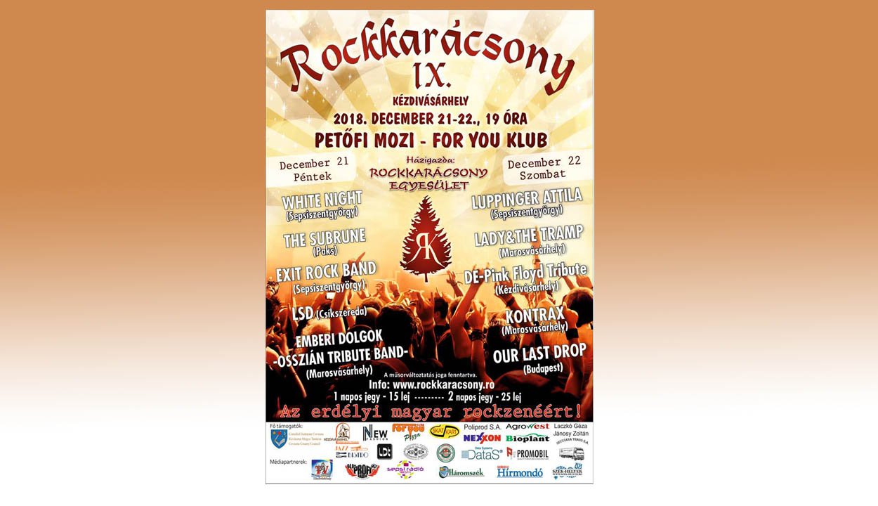 December 21–22-én rendezik meg Kézdivásárhelyen a Rockkarácsony kilencedik kiadását. A For You Klub színpadán két nap alatt tíz zenekar szórakoztatja a rockzene kedvelőit.