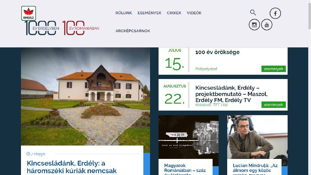 A honlap alapját jelentő programok sorából július 12-én, teltház előtt mutatták be a kolozsvári Bánffy-palotában a Magyarok Romániában – száz év története című, kilenc részes dokumentumfilm-sorozat első részét, amely az első világháború kitörésétől a Trianonig vezető útról szól – emlékeztet a hírlevél.