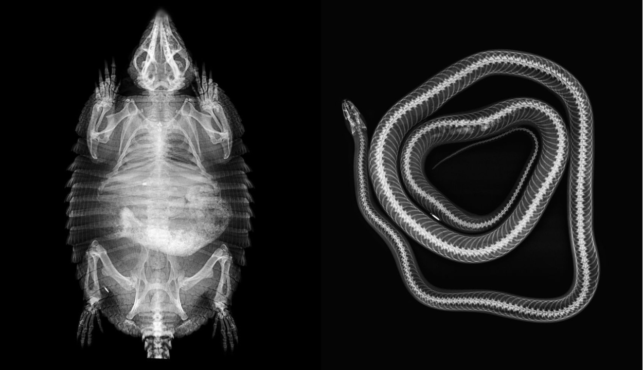 A Londoni Állatkert állatorvosai megosztottak néhány röntgenfelvételt, amelyeket a 18 ezer állatuk közül egy gekkóról,egy teknősről, egy kígyóról, illetve egy taturól készítettek.
