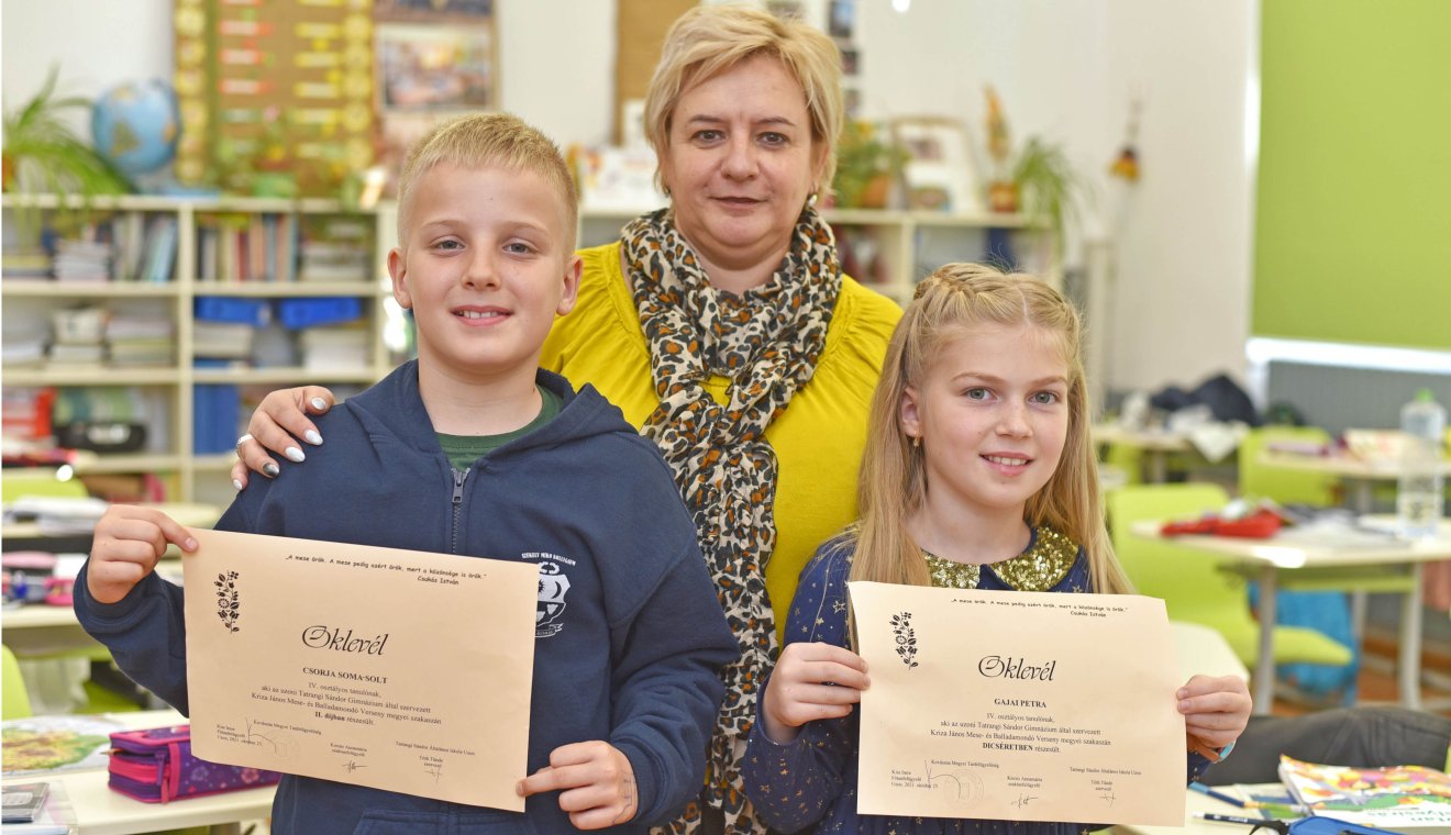 – Petra nagyon szereti a meséket, verseket, sokat olvas. Nem csak mesét mond, verset szaval, hanem nagyon szívesen ír, főleg verseket. Előkészítő osztályban is vállalta a megmérettetést, a Kriza János Országos Balladamondó, Balladaéneklő és Mesemondó Versenyen I. helyezett lett, idén a megyei szakaszon dicséretben részesült. Soma csak IV. osztálytól csatlakozott a csapatunkhoz, addig Kovásznán járt iskolába. Szeret sportolni, imádja a focit, a Sepsi OSK gyerekcsapatának játékosa. Amikor bekerült a focicsapatba, akkor döntött úgy, hogy a Székely Mikó Kollégiumban szeretné folytatni tanulmányait. Könnyen beilleszkedett az új osztályközösségbe, a gyerekek örömmel fogadták. Hamar kiderült az is, hogy nem csak a sportban tehetséges, hanem szépen, kifejezően olvas, ezért biztattam, hogy vegyen részt a mesemondó versenyen, és nem hiába. A Kriza János Balladamondó, Balladaéneklő és Mesemondó Verseny megyei szakaszán II. helyezést ért el – mesélte tanítványairól Lőrincz Enikő tanítónő.
