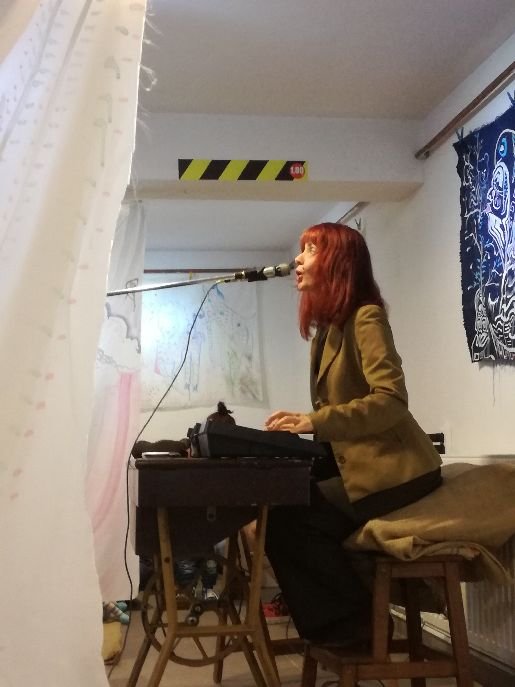 Csütörtök délután a Köntés Galériában rendhagyó kiállítástérben, rendhagyó festmények között nyitotta meg Becsey Zsuzsa kiállítását Bumbi, alias Bob József marosvásárhelyi képzőművész. A sokoldalú alkotó a lepedővászonra, selyemre festett művek mellett improvizációs koncerttel is elbűvölte a látogatókat.