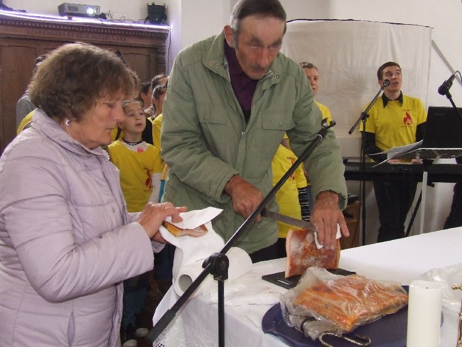 Az istentiszteleten Bartha Attila bölöni lelkipásztor és felesége, dr. Bartha Noémi orvosnő meséltek házasságuk történetéről és az imádkozás egészségünkre gyakorolt pozitív hatásáról, amelyet társadalmi kísérletek adataival igazoltak. A toronyból a Fekete Mária által felajánlott szalonnát Kis András hozta le, és Takács Sándor és felesége, Julianna szeletelte fel.