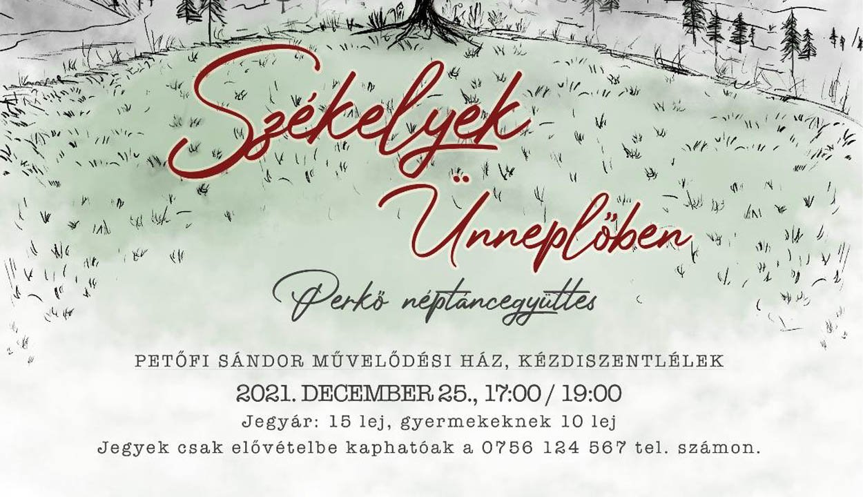 Az idén sem marad el Kézdiszentléleken, a Petőfi Sándor Művelődési Házban a Perkő néptáncegyüttes karácsonyi előadása, amely a Székelyek ünneplőben címet viseli. A produkciót december 25-én, szombaton két alkalommal, 17 és 19 órától tekintheti meg a nagyérdemű. A hagyományokra épülő műsort Dobai Katalin és Stefán Bencze rendezte.