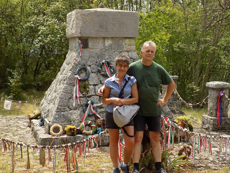 Postojna után vargabetűt írunk le nyugati irányba, átmegyünk Olaszországba, megnézni legalább egy részét az egykori doberdói hadszíntérnek, ahol nagyapáink harcoltak. Nem könnyű megtalálni az emlékhelyeket, de végül San Martino del Carso településen vagyunk, és ott áll előttünk a tábla, amely megdobogtatja a szívünket: „Dicsőséges visszaemlékezés a királyi hadseregre, a magyar gyalogezredre, aki hősiesen küzdött és bátran esett el a becsület mezején, 1915-1918”.
