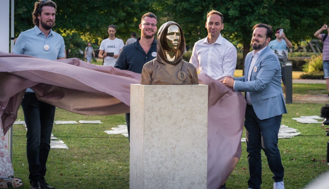 Csütörtök délután a budapesti Graphisoft Parkban felavatták a világ első bitcoinszobrát. Gergely Réka és Gilly Tamás alkotása a bitcoin kriptovaluta és a mögötte lévő blokklánc-technológia alapítójának, Nakamoto Szatosinak állít emléket.