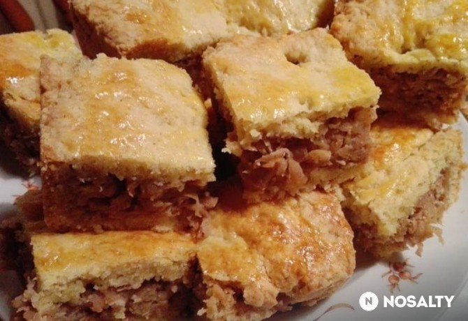 Elkészítés: a lisztet a margarinnal elmorzsoljuk, majd a többi hozzávalóval rugalmas, könnyű tésztát gyúrunk belőle. Amíg a tölteléket elkészítjük, a tésztát betesszük a hűtőbe, utána könnyebb kinyújtani. Az almát meghámozzuk, lereszeljük, levét kinyomkodjuk. Vaníliás cukorral, fahéjjal ízesítjük. Ízlés szerint tehetünk bele gyömbért is. A tésztát 2 cipóra osztjuk, kinyújtjuk. Az egyik tésztát a kivajazott-lisztezett tepsibe tesszük, villával megszurkáljuk, morzsával enyhén meghintjük. Jöhet rá a töltelék, majd a tészta másik fele. Tojássárgájával megkenjük a tetejét, villával megszurkáljuk. 200 fokra előmelegített sütőben 35-40 perc alatt készre sütjük. Mielőtt kivesszük, végezzünk tűpróbát! Ha kihűlt, felvágjuk, tálalás előtt a tetejét megszórjuk porcukorral. (www.nosalty.hu)