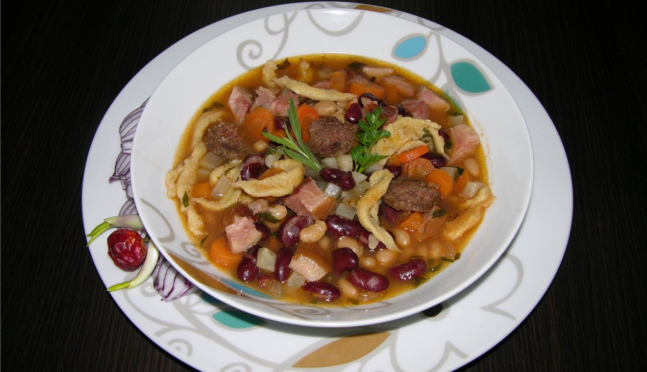 Kicsit hosszas az elkészítése, de a végeredmény magáért beszél. Jókai szerint néhány disznóköröm dukált bele, de én már csülökből készítem. Szóval, megfőzöm a csülköt paszullyal (előző este beáztatni!), majd mikor már majdnem készen van, teszek hozzá hagymát, murkot, zellert, fokhagymát és kolbászkarikákat (füstölt). Végül megy bele galuska, tejföl és hogy én is hozzájáruljak a recepthez, tárkonnyal ízesítem. Van, aki rántással is gazdagítja, de szerintem, ezt nyugodtan kihagyhatjátok, úgysem egészséges! Végül: „Igazi honfiak és honleányok csípős paprikát is áztatnak beléje!” – mondá a nagy író.