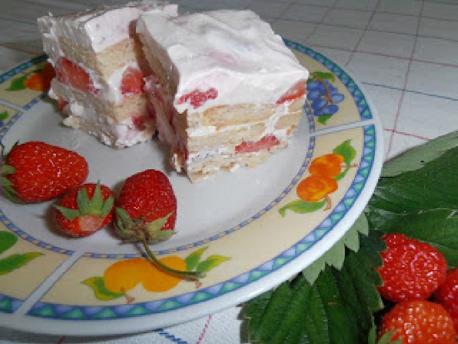 Az epret megmossuk, kisebb darabokra vágjuk. Egy részét (úgy harmadát) villával összetörjük. A tejfölt elkeverjük a citromlével és cukorral, hozzákeverjük az epret. A tál alját kirakjuk keksszel, ráöntjük az epres tejföl harmadát, újabb sor keksz következik, megint tejföl, újra keksz, a tetejére pedig a maradék tejföl. Lefóliázva néhány órára berakjuk a hűtőbe. De igazán finom másnapra lesz. Málnával is elkészíthető, vagy más idénygyümölccsel. (http://gerdisuti.blogspot.ro)
