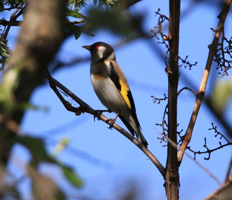 A diófa irányából jött a kedves madárének. Még nem borult zöldbe a fa, így könnyedén szem elé kerülhet a jól ismert tulajdonosa, a tengelic. A tavaly Magyarországon a tengelic nyerte el az év madara címet. Bármikor megcsodálhatjuk a tarka tollú, aranytorkú madarat, ugyanis énekesünk egész évben a környezetünkben van.