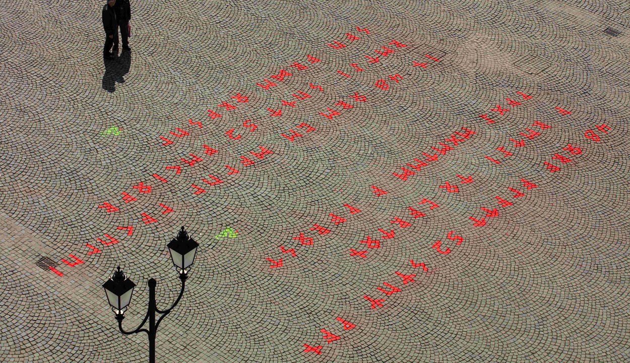 Titokzatos feliratot találtak ma reggel Sepsiszentgyörgy Főterén.
