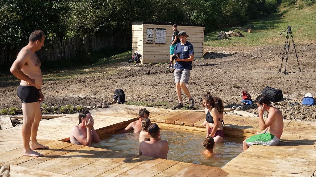 Szombaton az avató előtt még pár perccel zajlottak az utolsó simítások: néhányan takarítottak, seprűkkel és gereblyékkel tüntették el az építkezés nyomait. A feredő lelke, egy kis, kút- és forrásvíz által táplált, deszkával bélelt medence már foglalt volt: vidám, kalákázó fiatalok próbálták ki a munkájuk „eredményét”.