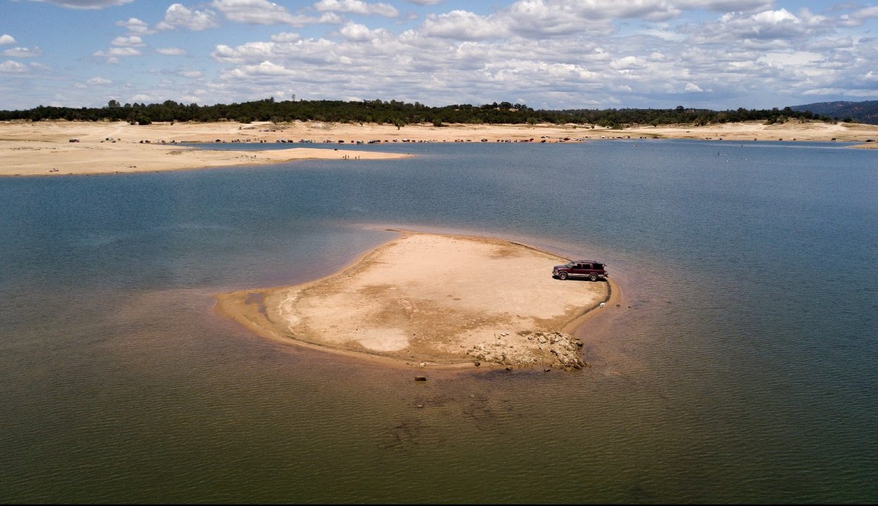 A Folsom-tó vízszintje jelenleg a szokásos 38 százalékán áll az államot sújtó történelmi aszály miatt. Gavin Newsom kormányzó múlt héten az 58 megyéből 41-ben vészhelyzetet hirdetett ki a szárazság miatt.
