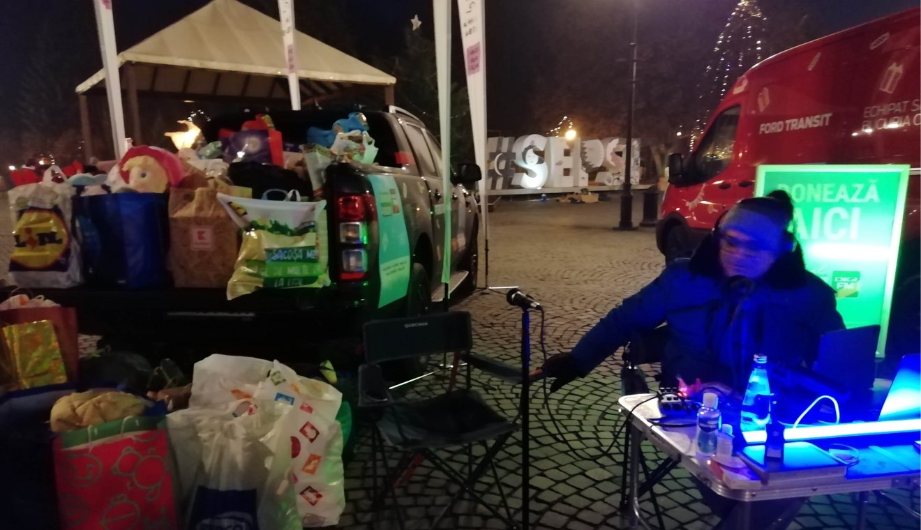 Az itt töltött két óra alatt mintegy hat köbméternyi játék gyűlt össze, a karaván során Sepsiszentgyörgyön adományoztak a legtöbben – mondta a rádiós, aki élőben jelentkezett be műsorába, és több helyit is megszólaltatott, valamint a jelenlévő gyerekek, osztályközösségek is énekelhettek. Az est folyamán megjelent a Kovászna Megyei Rendőrség kisteherautója is: ők is több száz ajándékot adtak át.
