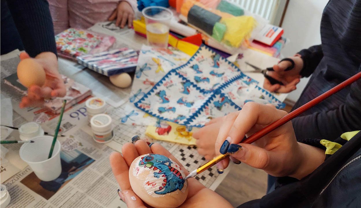 A program alkalmával lehetőség adódott különböző technikák kipróbálására. A hagyományos tojásírás és a harisnyás módszer mellett filctollal, csillámporral, szalvétával, krepp-papírral, borotvahabbal és ételszínezékkel lehetett megalkotni a különleges húsvéti szimbólumokat.