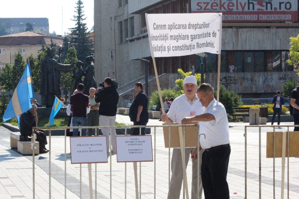 Tüntetők várták kedden Csíkszeredában Klaus Johannist. A mint­egy ötven személy székely zászlókkal, magyar, román, angol és német nyelvű feliratokkal fogadta az államfőt, aki érkezésekor szemlátomást tudomást vett a tiltakozókról.