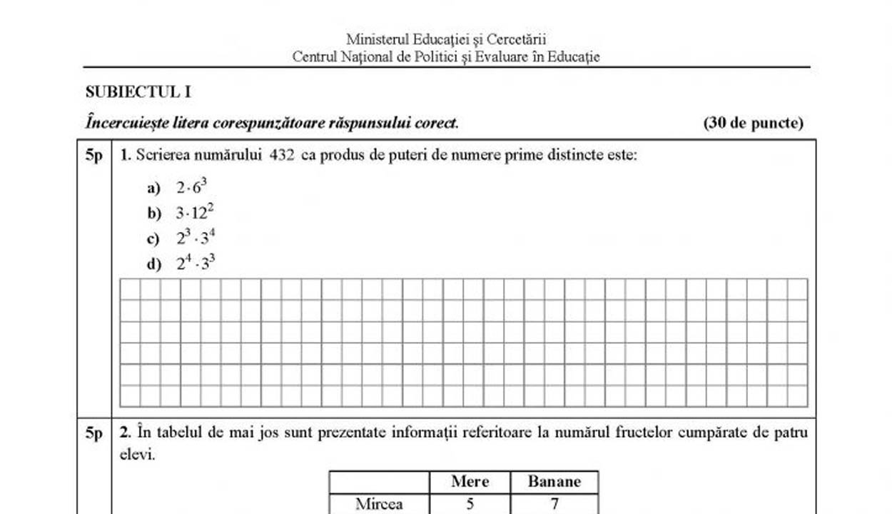 Kilenc órától kezdve két óra áll a tanulók rendelkezésére, hogy megírják a dolgozatukat, a kapott jegyet a diákok vagy szüleik írásbeli kérésére a naplóba is beírhatják. Kovászna megyében 76 iskolából összesen 1739 nyolcadikos fog próba-képességvizsgázni, az „éles”, országos felmérés pedig június 22-25. között zajlik. A próbaérettségin, amely e héten zajlott, 85%-os jelenlétet regisztráltak, a hiányzók közül 3-an koronavírusosak, heten pedig fertőzöttek kontaktszemélyei.