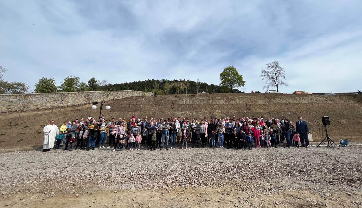 A kézdiszentléleki temető alatt, a papilak és a közösségi ház közötti részen jó pár hete szorgos munka folyt. A domboldalt teraszosították, alatta parkolót képeztek ki. Ide kerültek azok a csemeték is, amelyeket május 7-én, szombaton ültettek el az előző három évben született 55 csecsemő számára.