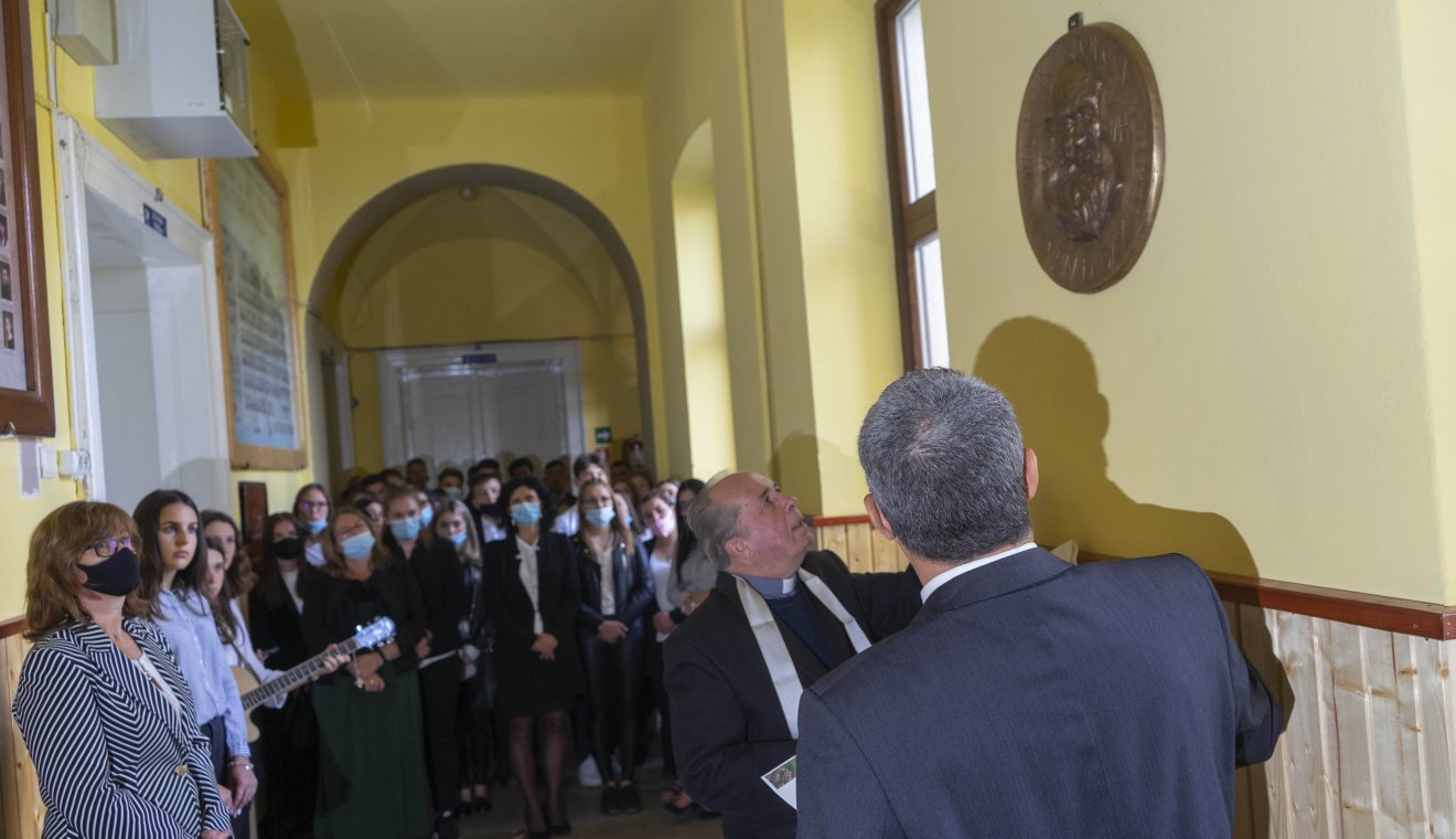 A megnyitót követően a diákok egy része jelen volt a plakettavató ünnepségen, elhangzott P. Kelemen Didák egy verse, Nánia Hanna és Nánia Hilda alkalomhoz illő dalokat adott elő. A Baksafalván (ma Kézdialmás része) 1683-ban született és Miskolcon 1744. április 28-án elhunyt hittérítőnek és írónak, a szegények pártfogójának, iskolák és kolostorok építőjeként is elévülhetetlen érdemeket szerzett minorita szerzetesnek az életét Hajlák Attila István iskolalelkész ismertette, a plakettet Varga Béla kézdi-orbaiszéki főesperes és Bejan András leplezte le. Az igazgató felolvasta az augusztus 11-én keltezett, a Holndonner Ferenc és dr. Várhelyi Krisztina által szignózott levelet is, abból kiderült, hogy a plakettet a miskolci Éltető Lélek Alapítvány adományozta, készítője Máger Ágnes miskolci festő- és szobrászművész.