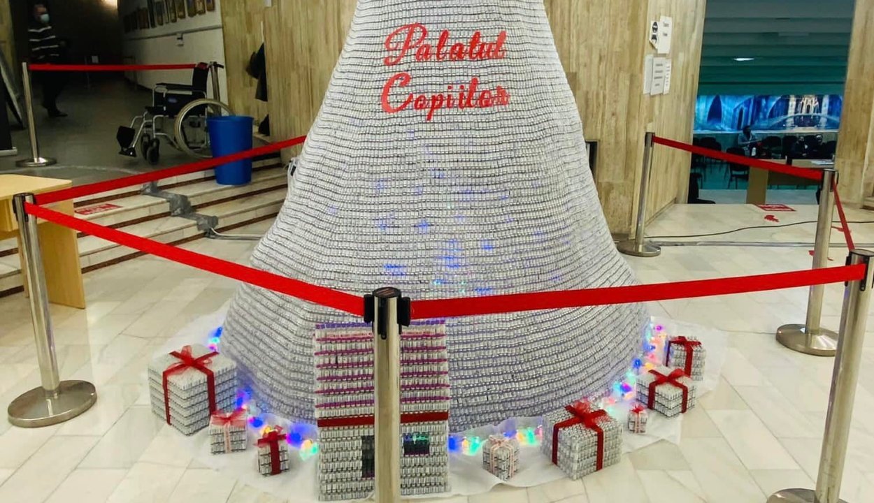 A 19 ezer darab üvegcséből készült fa felépítése több száz munkaórát vett igénybe - írták néhány napja a Ro Vaccinare Facebook-oldalon.