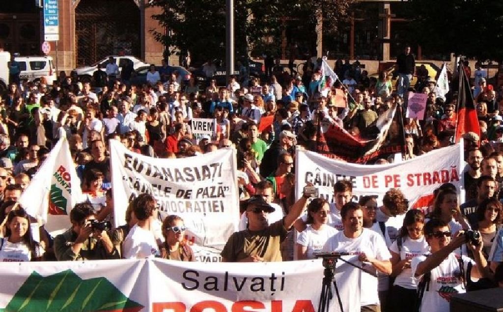 Több mint kétszázan tüntetnek Kolozsvár főterén az ellen tiltakozva, hogy a sajtóhírek szerint a kormány megszüntette azt az eljárást, amelynek nyomán Verespatakot felvehették volna az UNESCO védett kulturális örökségeinek listájára, írja az Agerpres.