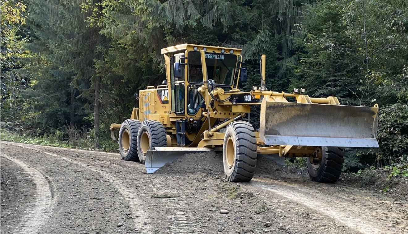 Jelenleg a DC14-es, kommandói úton zajlanak a munkálatok, gyalulnak, tömítenek, ahol szükséges kavicsoznak. Közben pedig a megyei tanács segítségével takarítják is az utat, a közlekedést akadályozó, veszélyeztető, behajló ágakat vágják le.