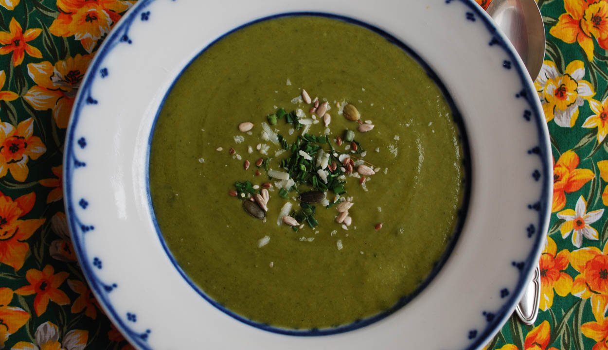 Levesünket szín szempontjából egy jó marék spenót terelheti a nem túl szemkápráztató drappból a halványzöld felé. Vegyes magokkal, reszelt sajttal (füstölt), pirított kenyérkockákkal fogyaszthatjuk ezt a tányérnyi tavaszt, a teraszon váratlanul felbukkanó melengető napsugarakba burkolózva.