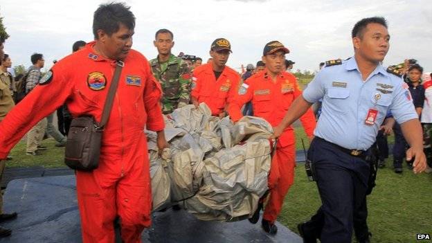 Az indonéziai hatóságok immár biztosra veszik, hogy a Jávai-tenger fenekén, Kalimantan partjaitól mintegy 170 kilométerre megtalálták a lezuhant gép roncsait, összesen hat nagyobb törzsdarabot. A legnagyobb közülük 18 méter hosszú, 5,4 méter széles. Eddig összesen harminc holttest került elő. Az első áldozatokat meztelenül találták a tengerben kedden. A ruhát egy több ezer méteres zuhanás téphette le az áldozatokról, ami azt jelentheti, hogy a gép már nagy magasságban darabokra tört.