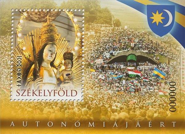 A bélyegen a csíksomlyói templomban őrzött Mária-szobor és a székely címer látható, valamint a Székelyföld felirat szerepel rajta magyarul és rovásírással. A bélyeggel nem lehet postai küldeményt bérmentesíteni, de a kibocsátó úgy véli, bélyeggyűjtők számára értékes filatéliai termék lehet.