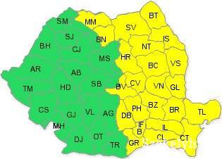 A második, szintén sárga jelzésű meteorológiai riasztás az ország keleti részén található megyék számára – köztük Hargita megye nagy részére és Kovászna megyére vonatkozóan is – a péntek reggel nyolc óra és este nyolc óra közötti időszakra jelez elő rossz időt. A nap folyamán havazás és felerősödő szél várható. A szél a 60–70 kilométeres óránkénti sebességet is elérheti. Szombat hajnaltól vasárnapig még várható havazás és felerősödő szél, de akkor már főként az ország dél-keleti térségében.
