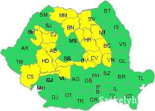 Sárga színű meteorológiai figyelmeztetést tett közzé csütörtökön délelőtt a Országos Meteorológiai Szolgálat. Közleményük szerint szombat délutánig havazás és erős szél várható az ország egyes térségeiben, köztük Kovászna megyében, Hargita megye nagy részén és Maros megye északi csücskében.
