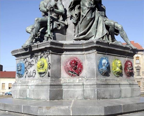 Ismeretlen tettesek szombatra virradóra a román nemzeti színekre festették le az aradi Szabadság-szobor talapzatán a 13 vértanú tábornok arcképét – közölte az aradinap.ro helyi portál.