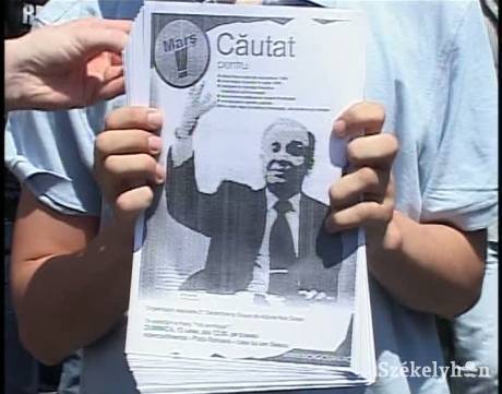 „Ion Iliescu köröztetik az 1989-es forradalom elsinkófálásáért, 1990 júniusában a bányászok behívásáért, az antikommunista egyetemisták elleni uszításért, a bányászjárások valódi okának eltitkolásáért és a közvélemény félretájékoztatásáért. Utoljára a Forradalom Intézményénél (Institutul Revoluţiei) látták, ahol éppen eltüntette az általa elkövetett törvénytelenségeket” – idézi a plakátot a Realitatea.