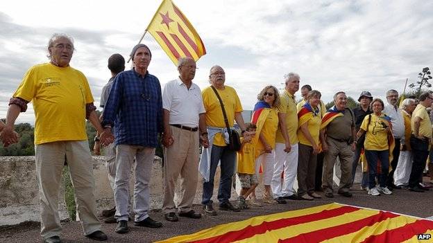 Katalóniában több százezer ember négyszáz kilométeres élőláncot alkotott szerda délután a tartomány függetlenségének és egy erről szóló népszavazás megrendezésének támogatására.