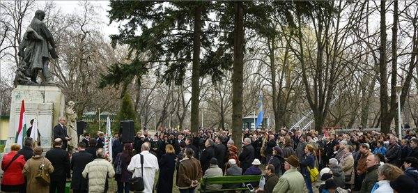 Napjaink nyelvhasználatért, kisebbségi jogokért és az autonómiáért zajló harcát vonta párhuzamba az 1848-as szabadságharccal Csomortányi István, az Erdélyi Magyar Néppárt Bihar megyei elnöke is, aki a Szacsvay-szobornál tartott koszorúzáson összegyűlt közel kétszáz fős hallgatóság előtt rámutatott: a márciusi ifjaknak akkori választási lehetősége most is aktuális.