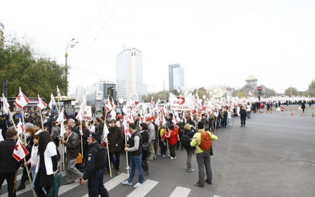 A szombati egészségügyi tüntetésen a szervezők közlése szerint tízezer személy vett részt. A tiltakozók az ágazat nagyobb finanszírozása mellett azt követelték, hogy a kormány duplázza meg az orvosok bérét, amely jelenleg rendkívül alacsony. Emellett kérték, hogy dolgozzanak ki új bérezési törvényt, amely minden egészségügyi dolgozó bérét növelné. A kormány jelenleg a GDP mintegy 4 százalékát fordítja az egészségügyi rendszer finanszírozására. Az orvosi kamara szerint az Európai Unióban a romániai rezidensek kapják a legkisebb fizetést, átlagosan 200 eurót havonta. A szakorvosok átlagosan 435 eurót visznek haza. Becslésük szerint Románia 2007-es uniós csatlakozása óta 14 ezer orvos és több mint 50 ezer ápoló hagyta el az országot.